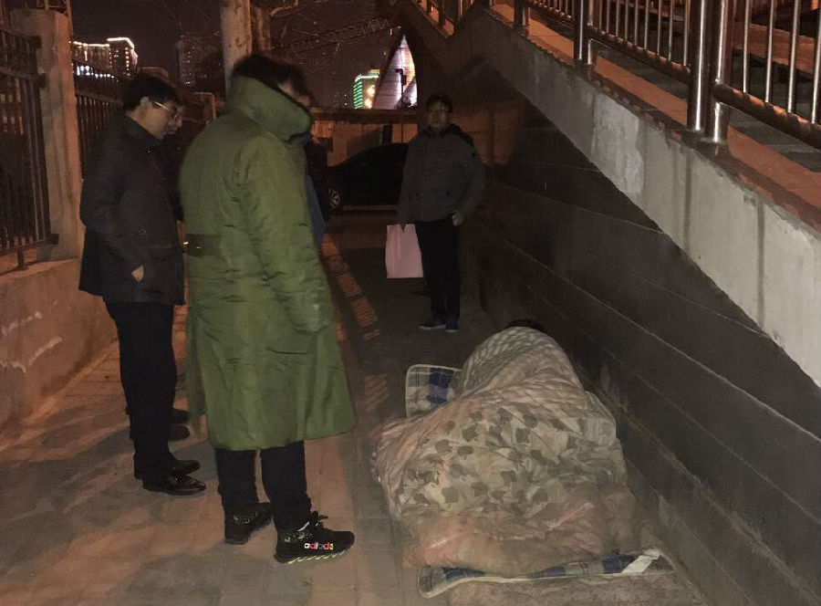 自2016年11月起,区民政局全体人员在区领导班子成员带领下,分成二十个巡查小组,轮流在夜间开展对全区的重点街口、游园、广场与立交桥下等开展巡查工作。尤其是在雨雪、大风等恶劣天气,加强了巡查力度、扩大巡查范围,发现问题及时解决,为全区的和谐稳定贡献了力量。