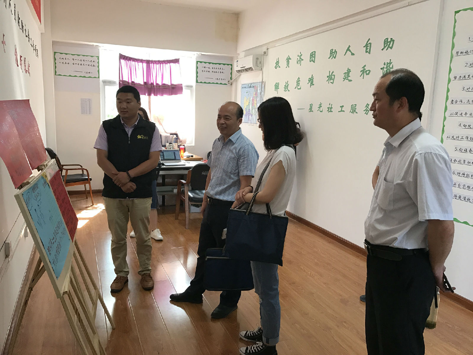 5月25日上午,郑州市民政局社会工作处处长王自兴一行在区民政局副局长许伟峰的陪同下,先后对二七区社区流浪乞讨人员救助社会工作服务项目进行了调研指导工作。
