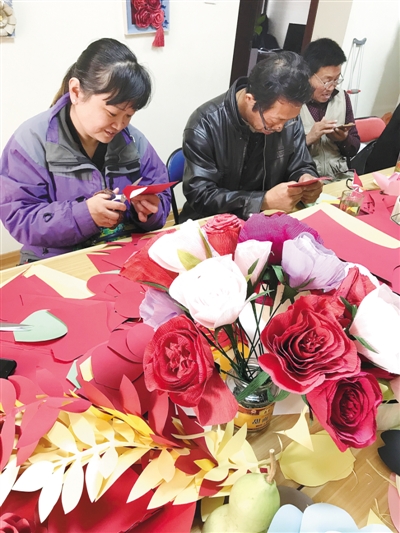 11月10日上午8点多,40岁的原慧云把在上小学的孩子送到学校后,骑车来到位于政通路大学路附近的菁英雅居小区院内的二七区残疾人技能培训就业示范点开始上班,刚一落座,示范点负责人就把一杯热茶端到了她的面前。示范点面积约100平方米,已经坐了近10个人,和大家打过招呼后,原慧云便开始埋头制作手工艺花。