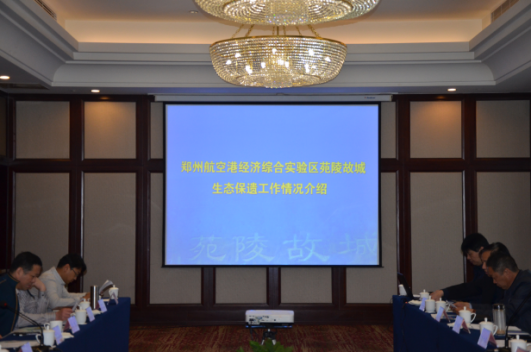为积极落实郑州市政府生态保遗建设工作,进一步提升园博园周边环境,加强历史文物遗存的保护利用,2017年4月16日,社会事业局邀请北京专家、省、市文物局主要领导及管委会相关领导召开了苑陵故城外城生态保遗建设方案务虚研讨会。参加本次会议的专家及领导有:清华大学教授、博士生导师郭黛姮、河南省文物局副局长马萧林、航空港实验区副主任常继红、航空港区管委会副主任王春山、航空港实验区副主任蔡红、郑州市文物局局长任伟等。其它参会部门主要有:河南省科学院地理研究所、郑州市文物局、郑州市考古研究院、郑州市园林局、航空港实验区经济发展局、国土资源局、规划部门和社会事业局、郭黛姮教授团队等。