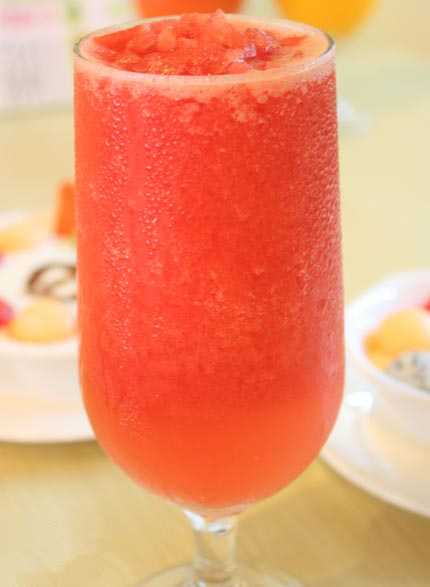 2、将冻硬的西瓜肉用搅拌机打碎;