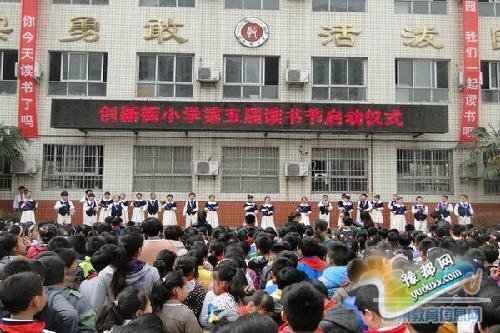 管城回族区创新街小学读书节的主题是“听读书的声音谈阅读的快乐”,口号是“书籍点亮人生 你今天读书了吗;书香溢满校园,我们一起读书吧”。学校号召师生“从今天开始,走进书店,挑选一本自己喜欢的图书来阅读;走进教室,从图书角取出一本图书来阅读;走进家庭,享受浓浓的亲子阅读时光;好朋友互赠一本好书,让书香传递友谊等,师生都要确立一种信仰:让终身学习和毕生阅读成为一种习惯和风尚。”