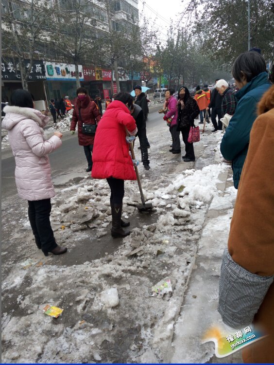 郑州迎来了2015年的第一场雪,雪景虽好,但是由于天寒地冻,路面结冰,道路难行。11月27日上午为了保障辖区居民的安全出行,紫荆山南路街道领导班子和各科室、社区成立了街道服务队在辖区开展扫雪除冰献爱心帮扶活动。