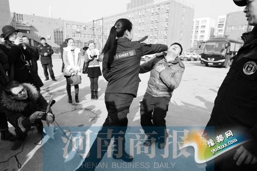 怎样提高女子的防范能力?在受到歹徒侵犯时如何脱身或自保?昨日,郑州女特警队员现场传授防身术。