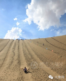 这是个超高的滑沙场,据说长度破吉尼斯纪录了。每个人一个小板,滑去吧!!