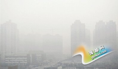 昨日下午,雾霾中的郑州