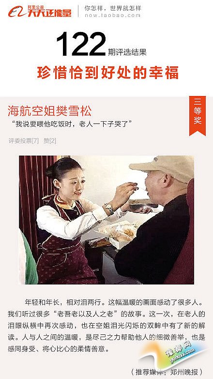 《细微善举引发全国关注 “跪地喂老人吃饭”空姐获正能量奖金》由河南新闻网-豫都网提供,转载请注明出处:http://zhengzhou.yuduxx.com/jinri/320529.html,谢谢合作!