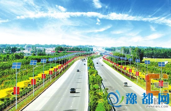 新郑郑新快速通道两旁,绿树和花草层层叠叠,令人心旷神怡
