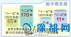 “十二五”期间,我市先后培育出了诸如宇通客车、三全食品等工业产值超百亿的本土企业,也先后引进了如富士康、海马轿车、格力空调等超千亿、超百亿的行业巨头企业,通过“领头雁”吸引相关产业及配套产业集聚,形成庞大雁阵效应。2014年,全市销售收入超百亿元企业达到11家,比“十一五”末增加5家,企业整体实力显著增强。