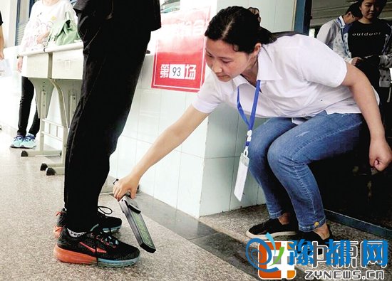 头发、耳朵、指甲,上衣、裤子、鞋子……昨天下午3点10分,47中考点,负责金属探测检查的监考老师陶芳芳,按照操作规范用金属探测仪对进场考生逐个进行全面细致检查,“要求很严格,标准很简单,金属探测器未报警就是合格了,随后进入身份验证程序。”