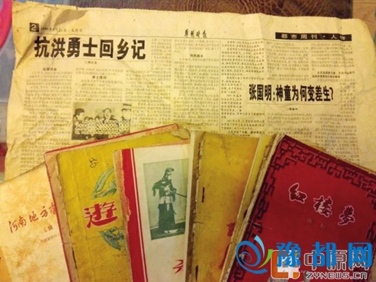 田老爷子把这些“宝贝”一一向胡希华介绍,剧本里不少剧目现在已经很少上演,有的老戏甚至已经失传,他说在文化大革命的时候“破四旧”,爱戏如命的他,冒险把这些书砌在自家墙里才得以保存。在那个没有收音机、录音机的时代,老人就是靠着这些剧本享受戏曲的快乐,不少剧目已经可以全文背诵。改革开放之后,他又借助《郑州晚报》了解时代的变化,获取各类信息,每当报纸上有戏曲方面的内容,他都会精心保存。