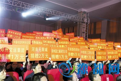 爱心企业在捐助活动中现场举牌捐赠