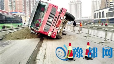 中原网讯(郑报融媒记者 汪永森 王军方 周甬 文/图)12月10日,中州大道与航海路交叉口向东的十八里河桥上,一辆运送建筑材料的货车压断桥面一根水泥梁后,发生侧翻堵住三条车道。目前,郑州交警四大队对事故开展进一步调查,市政部门对桥梁的检测报告和维修方案预计近几天出炉。检测报告出来后,才能确定维修方案和工期。
