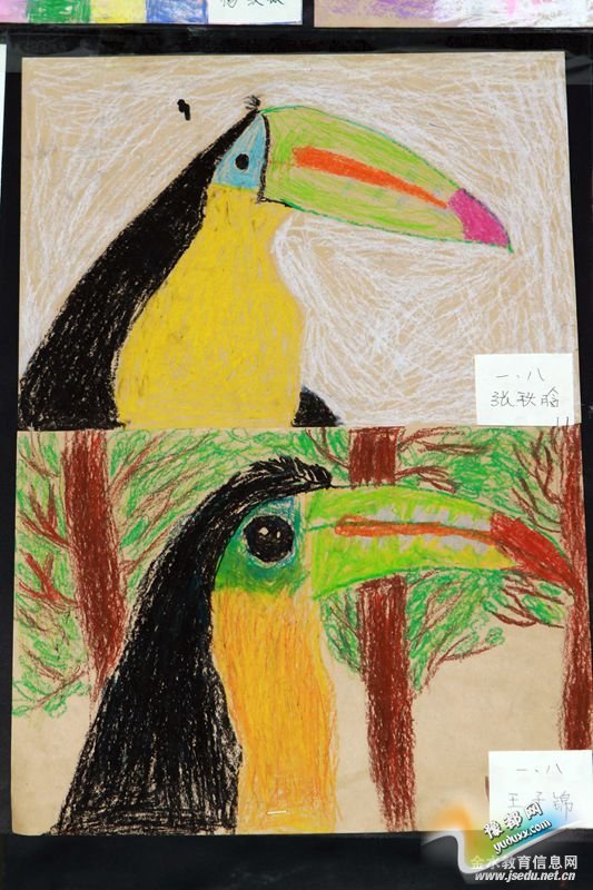 刚刚入学仅一个学期的孩子以剪纸、色粉画、拼贴画等各种表现形式,用稚嫩的笔触、巧妙的构图、大胆而夸张的色彩,展示出他们天真烂漫的内心世界和对美好未来的无限遐想。此次画展吸引了很多家长、老师和同学们前来观摩,为一年级美术专业的孩子们提供一个展示才华的平台。
