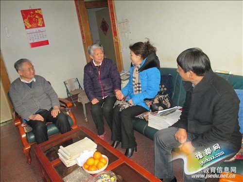 春节将至,为深入贯彻党的十八届四中全会精神,健全落实党内激励、关怀、帮扶机制,进一步做好关心、关爱职工生活,进一步深化党的群众路线实践活动,把党的关怀和温暖送给每一位老教师,黄河路第一小学认真扎实开展了对老教师、困难职工的走访慰问活动。2月5日至6日,杨关群校长一行四人来到了学校退休老干部及困难职工的家中,了解他们的生活状况,想尽办法帮助老教师及困难职工解决困难,还为他们送上慰问品,切实抓好老教师的生活保障工作。