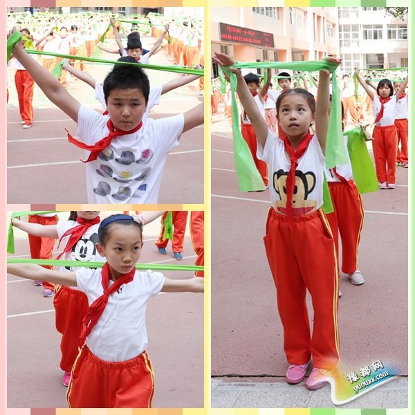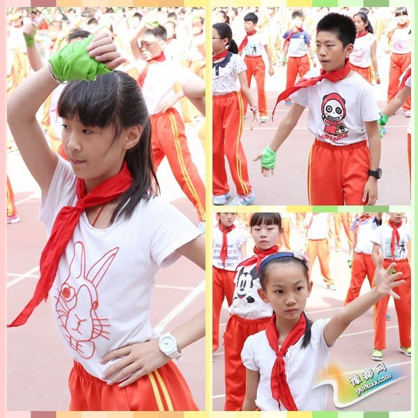下午的律动素质大课间,结合操舞自编操和啦啦操,包含动感十足的自编操《街舞少年》、高强度体能训练操《太阳当空照》和浓郁中国风的瑜伽拉伸带自编操《龙文》。自编操《街舞少年》》的充满青春与朝气,孩子们快速流畅的舞步伴以热情的音乐,给人一种极富有冲击力的视觉震撼,将区实验少年的自信与蓬勃,表现的淋漓尽致。自编操《龙文》,将瑜伽拉伸带引入其中,结合太极与中国古典舞中的呼吸提沉、身势手法,结合拉伸带的拉力,充分锻炼孩子们的全身肌群和身体控制能力。一招一式,整齐划一,令人赏心悦目。