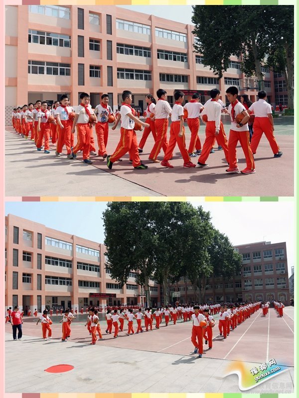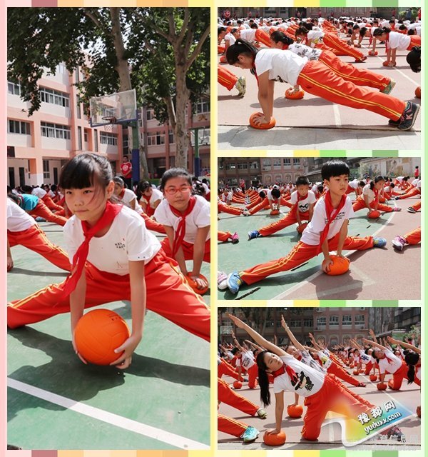 我校坚持以“快乐运动,享受健康”为指导思想,开发《跃动排球》校本课程,打造“一校一品”排球体育特色,广泛开展阳光体育运动,全面实施全员参与的“每天一小时”体育活动。上午的排球大课间历时40分钟。内容有以排球为主要内容的自编操《跃动排球》,并穿插分级段排球垫球练习。上午大课间还包含分级段“O”型跑和排球柔韧训练自编操《风吹麦浪》。将排球运动在大课间中进行练习、提高,在全校做到了全面普及。