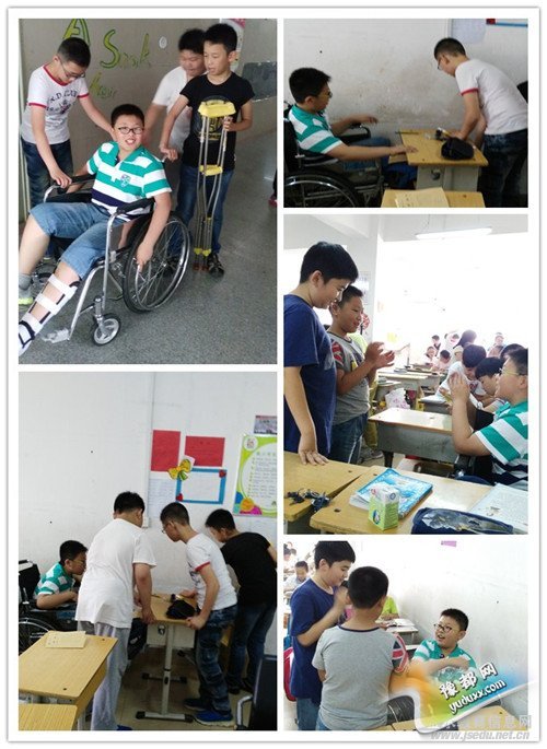 同学因不慎摔伤骨折,但是为了不耽误功课,还要坚持坐着轮椅来上课,这下可忙坏了文化绿城小学小学五六班的孩子们,看!他们好有爱心,争先恐后地主动承担起照顾同学的任务,没有老师的安排,他们主动推着同学上厕所,到走廊上转转,下课了,怕同学孤单,都围着同学陪他做起了游戏。受伤孩子的妈妈说他们每天早上送孩子来学校,总会有同学跑过来帮忙,顺手拿过书包,帮忙搬桌子,帮忙把轮椅放好。