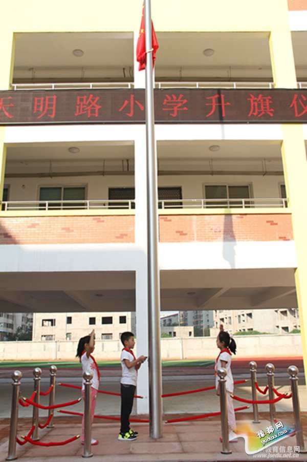 新的学年见证新的发展,新的目标迎接新的挑战。2015年9月7日上午,天明路小学全体师生齐聚校园,举行新学年的首次升旗仪式。