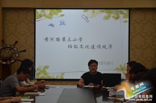 9月18日下午,黄河路第三小学在袁改云校长的带领下班子成员、全体班主任和嘉宾评委老师参与了班级文化建设的评比观摩活动。经过参观、评比,评委们被新颖别致的班级文化所吸引。各班文化建设秉承“做阳光学子 享快乐童年”的办学理念,文化建设既注重外部建设又着力内涵发展。各个年级群策群力,以此为主题进行了多次研讨,力求既有年级统一设计又有班级特色。比如一年级的绿色主题、二年级的花草蝴蝶主题、三年级的“像花儿一样绽放”不织布主题、四年级文化主题、五年级的阅读主题、六年级的班级凝聚力建设等等,都看出了班级文化建设中老师们注重顶层设计,注重整体和谐。各个班级常规栏、黑板报、特色版面、图书角、植物角、卫生角处处都有老师和学生的巧思,制作精美,大方实用。从此次观摩中还感受到了很多班级管理细节处的精彩,比如低年级的雨衣存放处、六年级的植物认养管理卡等等。卫生角的设计也是此次观摩活动的一大亮点,大家就如何做好劳动工具的日常维护、摆放的合理性等各显身手,五年级家长制作的卫生摆放架,劳动工具可以全部摆放上去,而且根据每种劳动工具的特点在摆放架上设计了挂钩、托盘,美观实用,可以在全校推广。