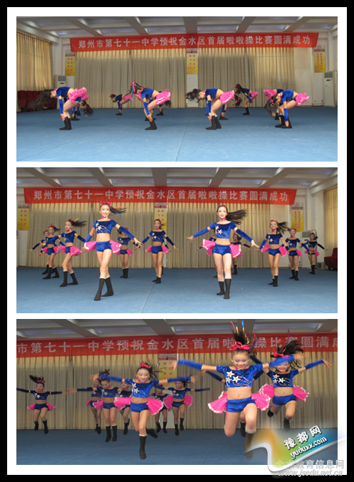 昨日下午,金水区首届中小学啦啦操比赛在郑州市金水区71中学拉开帷幕。全区共有57只代表队分别参与花球啦啦、街舞啦啦、爵士啦啦、技巧啦啦4大项7个组别的啦啦操争夺赛。 优胜路小学“花木兰啦啦操”社团的啦啦宝贝们积极参战,参加了花球自选啦啦和爵士啦啦两个项目的比赛,并分别夺得第三名、第二名的好成绩。 孩子们规范优美的动作、张弛有度的表现力,配合精准的设计编排,整齐的队型变换,在旋律优美的动感音乐下,时尔下腰、踢腿、跳跃,时尔翻腾、旋转,炫目的花球在她们手中飞快的舞动,犹如一团明媚的焰火,瞬间调动起现场气氛,让人目不暇接,得到评委老师们的高度评价。