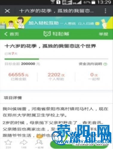 《花季少女折翅胰腺癌 村民合力铸大爱》由河南新闻网-豫都网提供,转载请注明出处:http://zhengzhou.yuduxx.com/xingyang/510334.html,谢谢合作!