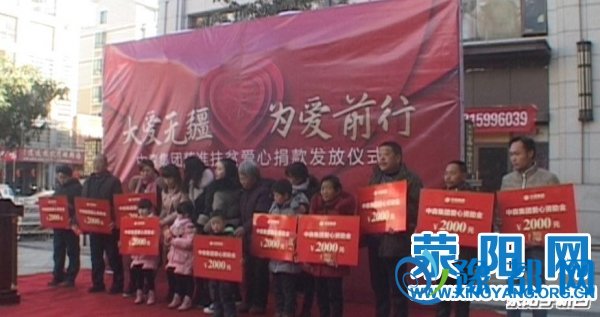 近日,中森集团联合荥阳慈善总会开展的“大爱无疆 为爱前行”精准扶贫爱心捐款发放仪式在该公司门前广场举行。
