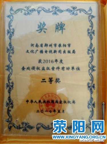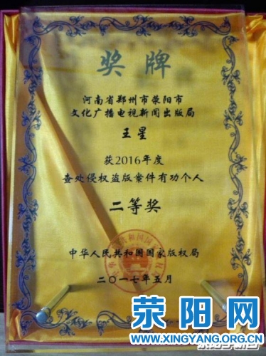 近日,市人民检察院、市文广新局2个单位被国家版权局授予2016年度查处侵权盗版案件有功单位二等奖,王星、卢凯鹏等4人为2016年度查处侵权盗版案件有功个人二等奖,以表彰我市在侦破2016年“1.26”侵犯知识产权案件中做出的突出贡献,这是我市扫黄打非工作在连续三年获郑州市扫黄打非工作先进单位之后,首次荣获国家级荣誉。(文广新局 陈昆鹏)