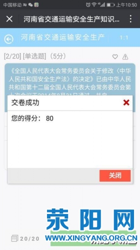 《市运管局积极开展“平安交通杯”网络竞赛答题活动》由河南新闻网-豫都网提供,转载请注明出处:http://zhengzhou.yuduxx.com/xingyang/673280.html,谢谢合作!