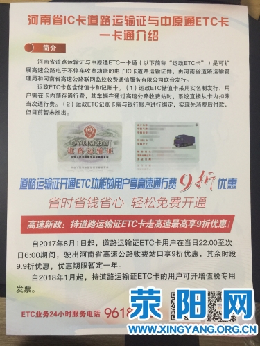 《荥阳市道路运输证和ETC卡首度融合》由河南新闻网-豫都网提供,转载请注明出处:http://zhengzhou.yuduxx.com/xingyang/759317.html,谢谢合作!