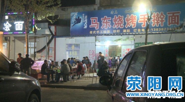 荥运路与商隐路交叉口东侧路北夜市一条街存在店外经营、露天烧烤。