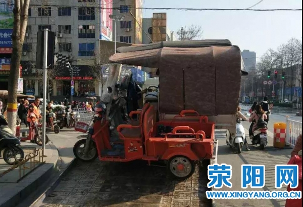 当前,在荥阳的大街小巷三轮车“并驾齐驱”、与机动车辆争道抢道、逆行等现象普遍存在,不仅给城市交通带来安全隐患,也严重损坏了城市的文明形象。在一些繁华地段如商场、车站、医院门口更是拥堵不堪。更令人担心的是,一旦出了交通事故,大多数三轮车无牌照、没有办保险,很难对事故负责。
