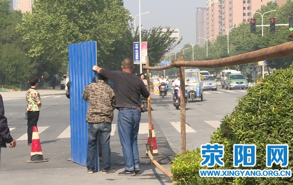 今天上午,记者在该路段看到,市住建局市政公司的施工人员正在现场进行封闭围挡的安装工作。