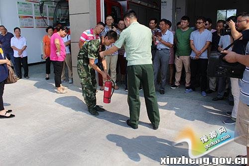 消防官兵演示灭火器如何使用