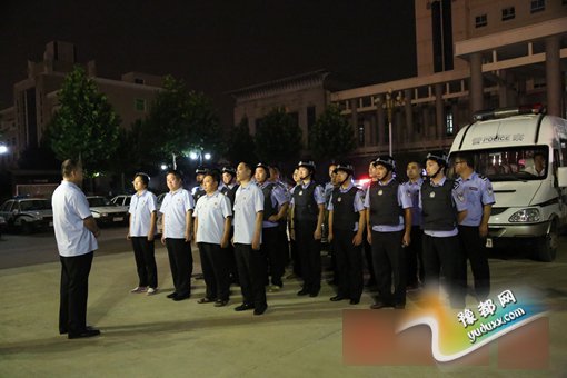 凌晨一点半,中牟法院办公楼前警灯闪烁,中牟法院执行局干警及法警大队干警在副院长李长明的带领下,列队整装待发。