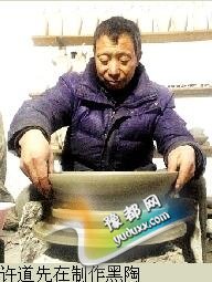 许道先说:“制黑陶是从我老爷(即曾祖父)那时开始的,家里祖祖辈辈都做陶器生意,到我现在是第四代。”