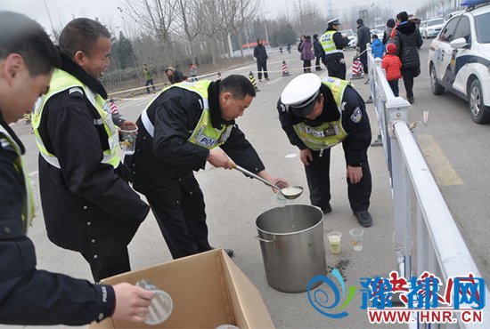 中牟交警大队一名民警说,今年春节,随着中原大庙会在绿博园举办,位于中牟的绿博园、方特欢乐世界景区真正成了人们欢度春节,休闲娱乐的好去处。在这里,既可以看传统节目、品小吃美食、赏民俗文化、看中原灯会,还可以游冬季花海,逛童话世界。春节七天长假,这里每天都是游人如织,车来车往。尤其是大年初一这天,游客突破5万余人,可以说达到了井喷。为了确保景区的道路畅通,中牟交警几次改变人力部署,从而使在这里执勤的民警达到50余名。由于人流量集中,车流量大,执勤民警没有一点喘息的机会。为了保证道路的畅通,他们简单吃上口饭,就又走上了工作岗位。来回奔波于车流之间,腰酸了,腿困了,他们都不敢停下歇会,生怕滞留一名游客。