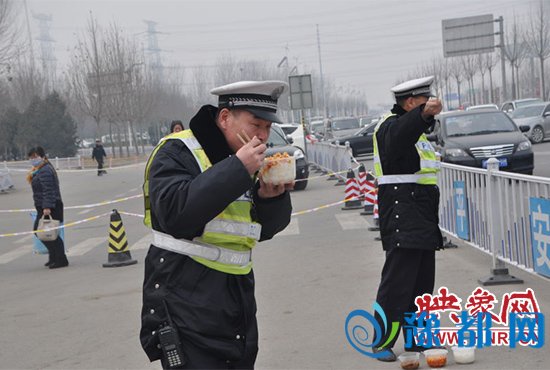 绿博园里举行庙会,有年味;方特欢乐园里游玩项目多,好玩。2月13日,这两个地方成了郑州市民热闹的去处。为了维持好这里的交通安全,保证市民能安全出游,享受快乐,中牟交警在这里辛勤值班,忙得连吃饭时间都没有。为了保证民警能够吃上一口热饭,大队后勤科将饭菜送到执勤点,执勤的民警中午轮流吃盒饭,在人流如织的景区道路上,坐没地方坐,他们干脆就蹲在路边、或者是趴在车的后备箱上吃饭。有游玩的市民看到他们的吃相后评价,这也许是春节里,大家看到的最美的吃姿吧!