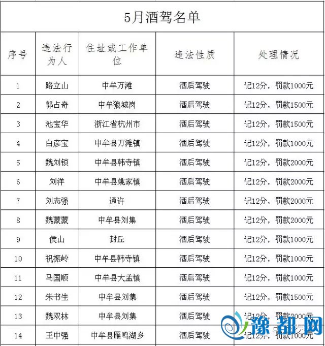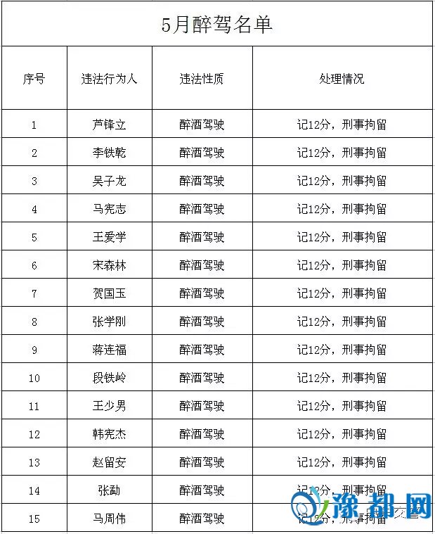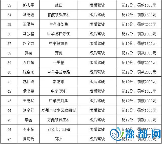 《“百日行动”酒驾、醉驾名单曝光 看看有你认识的人没?》由河南新闻网-豫都网提供,转载请注明出处:http://zhengzhou.yuduxx.com/zhongmou/399993.html,谢谢合作!