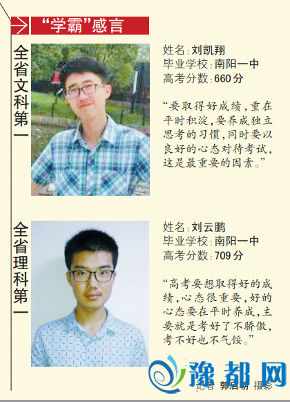 去年,我省文理科第一名都出自周口,而今年都出自南阳。