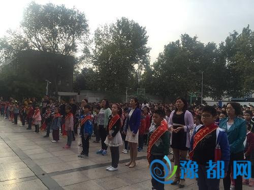 凉风习习,告别了十一的小长假,建设路的孩子们高高兴兴重返校园,10月8日一大早,全体师生齐聚操场举行了以“爱国,从我做起”为主题的升旗仪式。