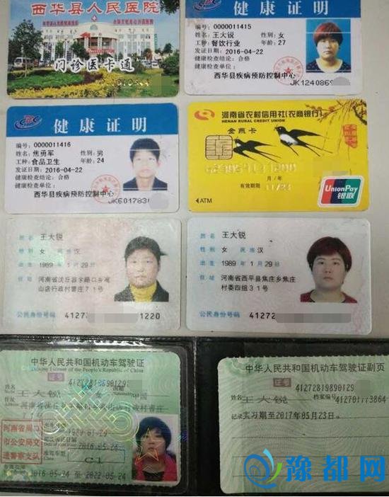 李女士的母亲吴阿姨是中牟县老县城解放路街道的一名环卫工,12月23日下午2点左右,吴阿姨在解放路南段马路旁边的绿化带里清捡垃圾时,在绿化带里发现了一个粉色的女士钱包,钱包上沾了很多的泥土,吴阿姨打开钱包,发现里面有两张身份证、一张银行卡、两张健康证明、一张医疗卡和一个驾驶证。从身份证的信息来看,丢钱包的应该是一位来自周口市西华县的王女士。
