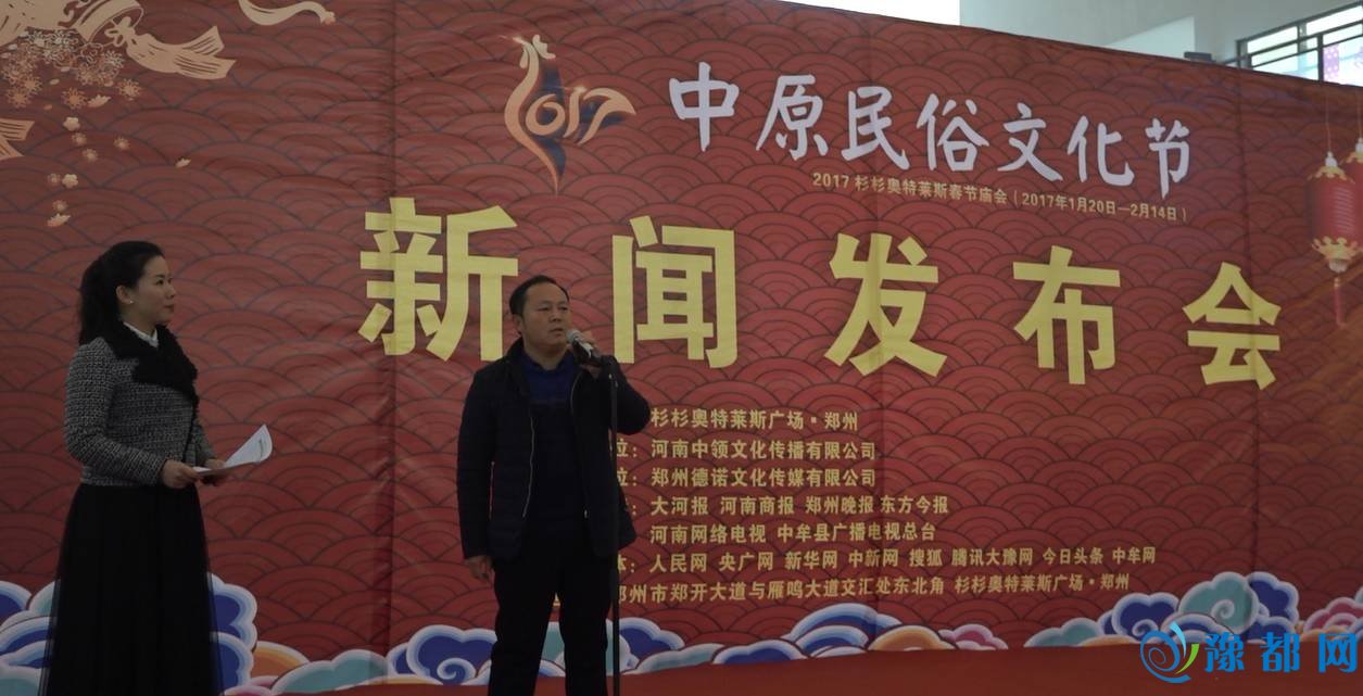 ??1月5日,由杉杉奥特莱斯广场主办,河南中领文化传播有限公司承办,郑州德诺文化传媒有限公司协办的中原民俗文化节新闻发布会在杉杉奥特莱斯广场召开。经杉杉奥特莱斯广场、中原民俗文化节组委会近两个月的精心策划,通力合作,春节庙会筹备工作圆满完成,将于1月20日(小年二十三) 在郑开大道杉杉奥特莱斯广场隆重开幕。??