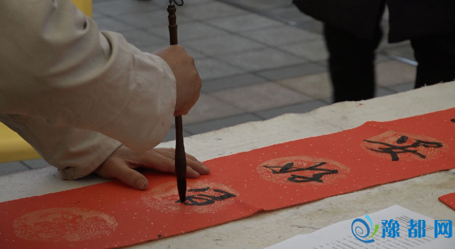 ??新闻发布会现场还请到了河南书法家协会的老师现场书写春联,他说:“手写春联是中国传统文化的象征,希望下一代继续传承和发扬传统文化。”??