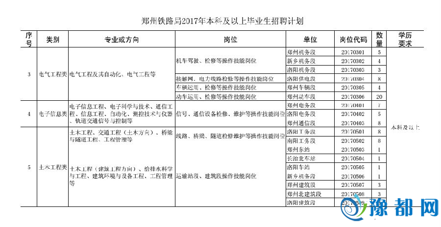 《2017郑州铁路局招聘毕业生315人考试公告》由河南新闻网-豫都网提供,转载请注明出处:http://zhengzhou.yuduxx.com/zhongmou/584319.html,谢谢合作!