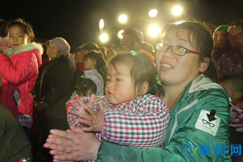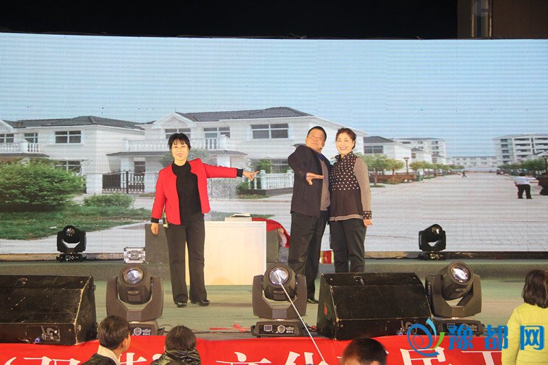在刁家乡付李庄社区,夜色如水,灯光音响在突然紧凑的一阵雨点中被披上“雨披”;年轻的舞蹈演员候场时,露肩的舞服外裹紧大衣跺着脚。乐声一起,甜美的笑容,精准柔婉的动作,仿佛冷风瞬息换了暖风。