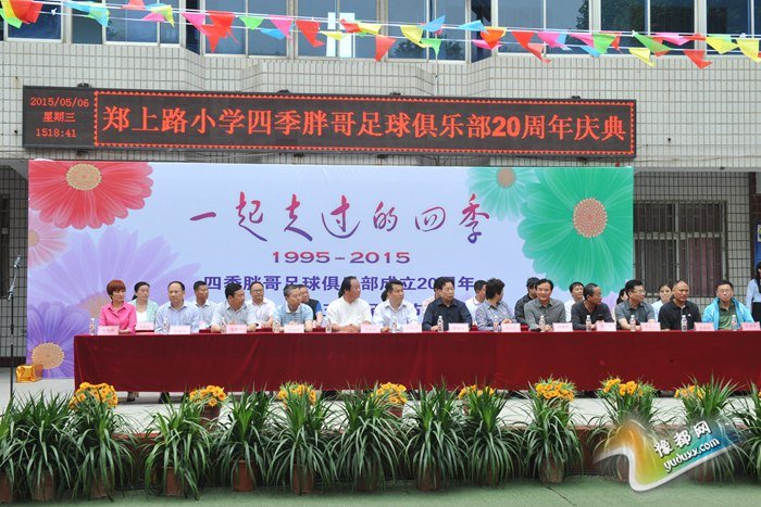 5月6日下午,郑上路小学举行“四季胖哥足球俱乐部”成立20周年暨第五届足球文化节开幕式。河南省政法委原书记、省人大常委会副主任张世军,郑州市政协副主席吴晓君,河南省教育厅体卫艺处处长郭蔚蔚,河南省球类运动管理中心主任李激扬,郑州市体育局副局长周朝晖,郑州市教育局副调研员王克杰,郑州市教育局体卫艺处处长高百中,郑州市足协秘书长房朝阳,中原区教育体育局局长吴晓昊,工会主席候惠敏,全国工商联水产业商会永久名誉会长、河南四季胖哥集团董事长、郑上路小学名誉校长邱新航等人应邀参加了此次活动。