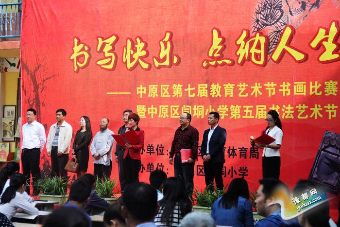为营造浓厚的校园墨香文化,充分展示书画艺术的魅力,促进书画爱好者之间的交流,4月28日上午,我局主办的第七届教育艺术节书画大赛暨中原区闫垌小学第五届书法艺术节活动在闫垌小学校园举行。区教体局局长吴晓昊,党委副书记、纪委书记李中全、副局长翟建军、工会主席侯惠敏、河南省翰墨书画院院长陈银须以及局属各中小学负责人出席了本次活动。