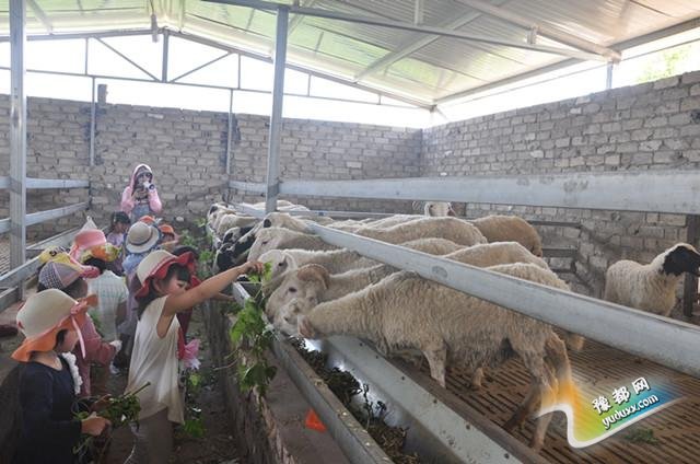 播种完后,孩子们来到农场区,在喂养小羊和小鸡的过程中,增长了饲养小动物的技能,提高了关爱动物的意识。