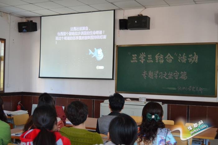 此次活动由第二党小组主持。会上,第二党小组组长张佩雪,以“坚韧坚守,成就自我”为主题,与党员教师一起进行专题汇报学习。接着,校长张焱带领全体党员观看了课件《一条忍着不死的鱼》。专题讲述一条叫“黑玛”的肺鱼,历经四年缺水的种种磨难,坚持奋斗不息,直到创造生命奇迹的故事。观看过后,党员教师明白了:生命需要信念,信念需要坚韧,坚韧创造奇迹。只要坚持就一定能把事情做好,遇到困难或挫折的时候,只要拥有坚定的信念,坚强的心灵,努力坚持到底,就会成功。